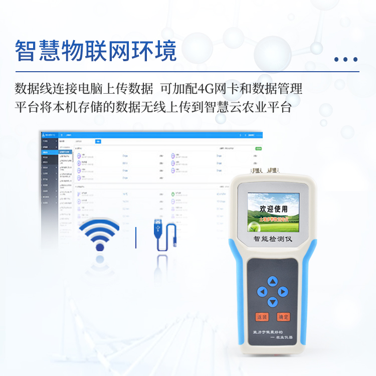 6、仪器可加配4G联网功和能数据管理平台,将本机存储的被测点环境因子测量历史数据无线上传到智慧云农业平台,方便用户进行数据管理和长期分析。