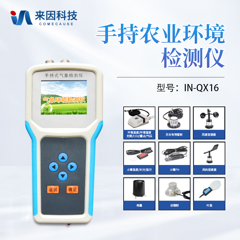 简要描述: 手持农业环境监测仪IN-QX16采用一体化结构设计,内置GPS模块,GPRS模块,外置SD卡,能准确的测量出被测地点的地理信息,界面除显示所测环境参数、存储数据外,还可显示测点的经纬度。通过内置的GPRS一键上传被测点的环境因子测量数据等。同时还可以通过外置SD卡直接把数据导出到电脑上。