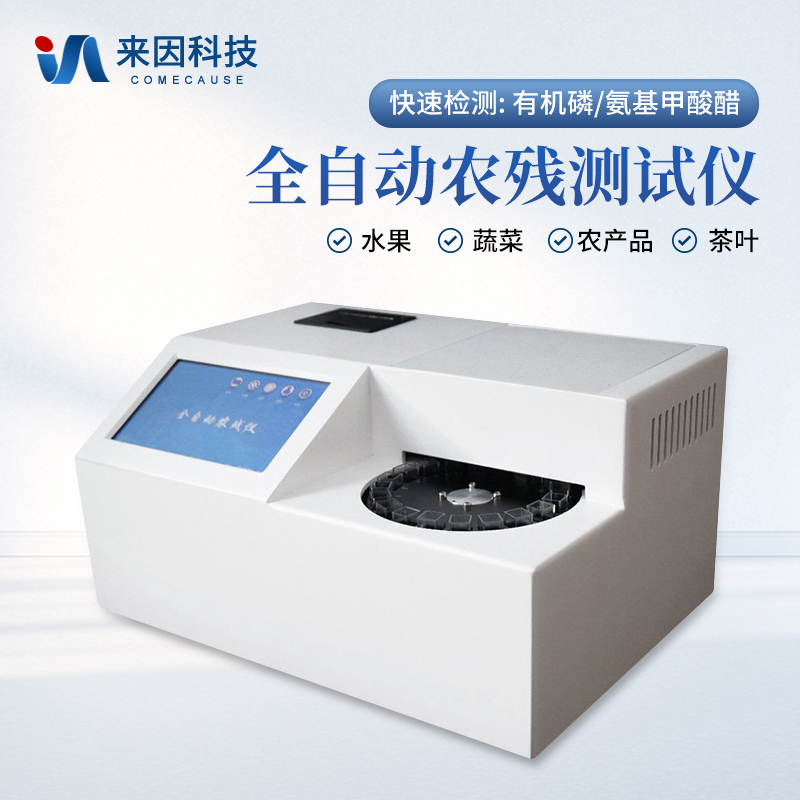 全自动农残检测仪主要用于定量分析蔬菜、水果等样本的农药残留成分。检测系统主要包括项目参数、试剂位置、仪器调校、设置、样本信息、结果查询、初始化、全盘清洗等功能模块。具有分析速度适中、无交叉污染、消耗品少、试剂开放等特点。