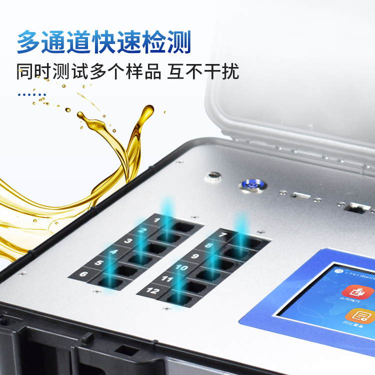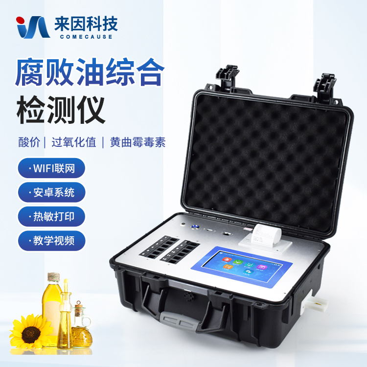 食用油综合检测检测仪为集成化油品快速检测分析设备,能够快速检测食用植物油、食用猪油、花生油、葵花油、米糠油、食品、肉制品中的酸价、过氧化值、黄曲霉毒素等含量;通过检测可确定植物油是否符合国家标准或是否为酸败油、劣质油、地沟油等。仪器预留其他项目检测程序和端口,根据日后需求可方便的自主增加检测项目。日后可升级为检测水产品、面制品的综合类型仪器。