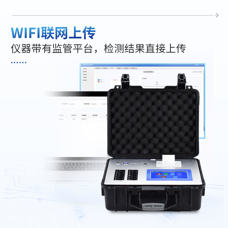4、仪器带有监管平台,数据可局域网和互联网数据上传,检测结果直接传至食品安全监管平台。进行区域食品安全监管及大数据分析处理与数据统计,检测区域食品安全长短期动态,达到食品安全问题预估、预警