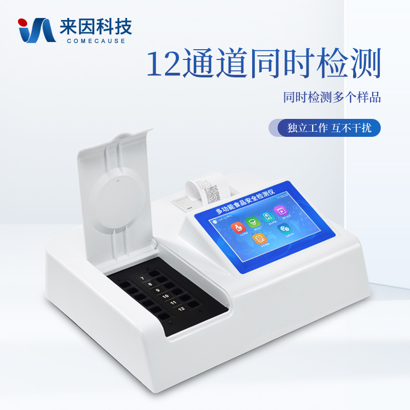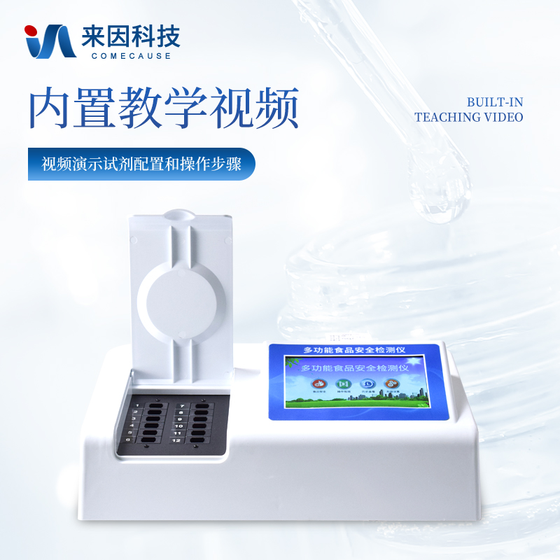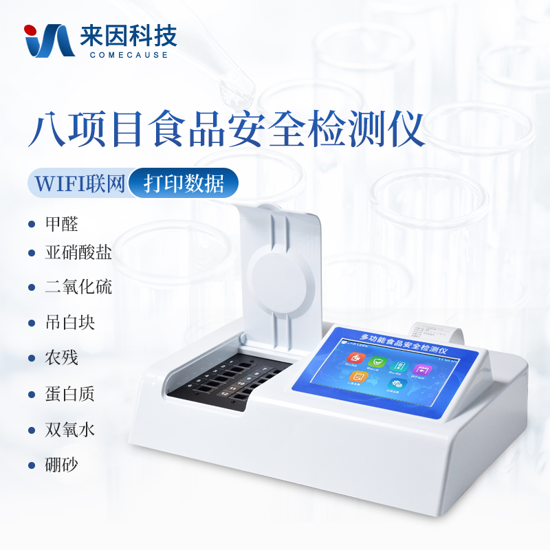 可快速检测各类食品中的甲醛、吊白块、二氧化硫、亚硝酸盐、双氧水、硼砂、农药残留、乳及乳制品中蛋白质的含量,仪器预留其他项目检测程序和端口,根据日后需求可方便的自主增加检测项目。