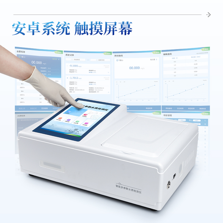 水质磷酸盐快速检测仪是参考标准GB/T 11893-1989钼酸铵分光光度法设计制造;主要检测水质磷酸盐浓度指标,兼具智能数据分析功能,图表、列表显示数据,分析一目了然;高清晰度彩色液晶触摸显示屏,Android智能操作系统,中文显示界面,中英文键盘,人性化操作,使用更简单。