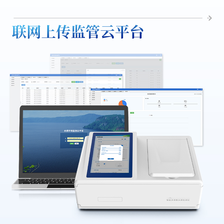 云平台:仪器带有监管平台,连接有线/无线网络,检测结果直接传输至环境安全监管平台。