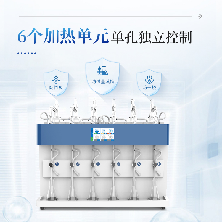 1、批次处理量为1——6个,每个通道均独立控制,并且每个通道都配备了防倒吸、防过量蒸馏及防干烧的功能保护设计;