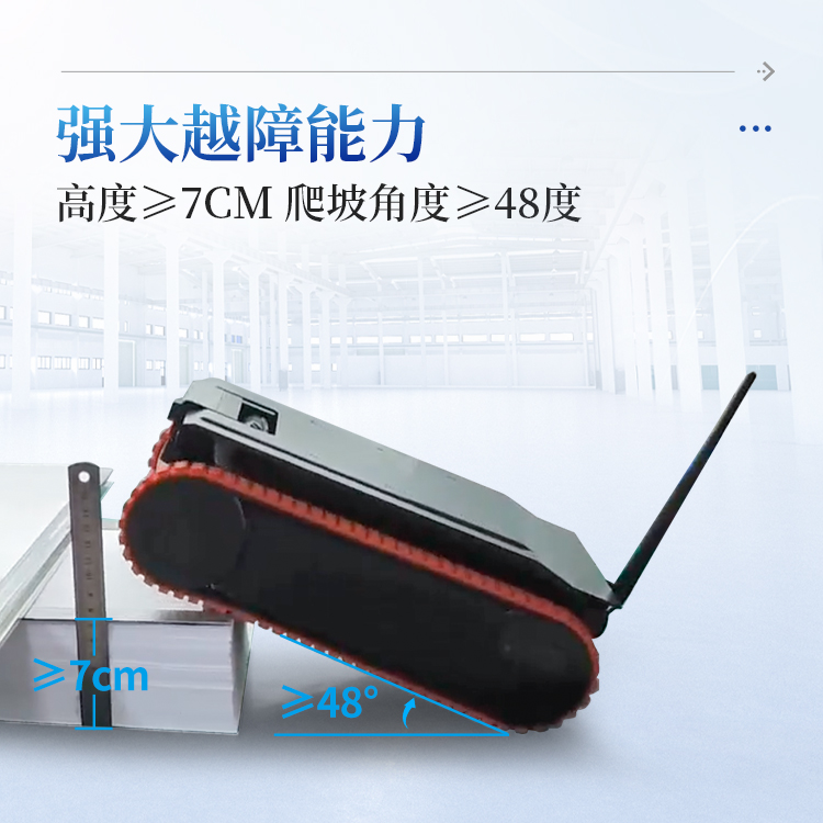 强大越障能力:越障碍高度≥7cm,爬坡角度≥48度,整机含电池工作重量仅为4.0KG。