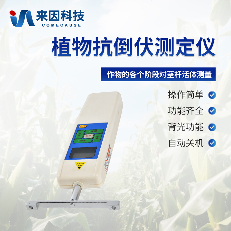 植物抗倒伏测定仪是决定农作物抗倒伏能力的一个关键因素,玉米,高梁、烟草等的植物的倒伏给农作物的机械收割造成很大的困难。造成大量的浪费。另外,农作物的倒伏导致光照不充分,使其生产量受到极大的限制。在作物生长的各个阶段对其茎杆进行活体测量,进而根据茎杆纤维层的抗弯阻力与抗倒伏能力的相关性对群体测量数据进行统计处理,对作物的栽培和育种具有重要意义。